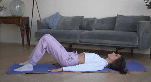 매트에 누운 후 무릎을 세우고 발은 바닥에 고정합니다. 엉덩이에 힘을 주어 천천히 공중으로 들어 올려 브릿지 자세를 만듭니다. 다시 엉덩이를 바닥 가까이 내렸다가 들어 올리는 동작을 반복합니다.