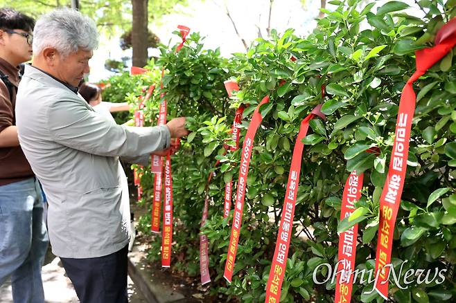 한 청년은 "윤석열정부가 주 (최대) 69시간제를 내세웠는데, 국민한테 죽을만큼 일하라고 할 게 아니라 대통령이 먼저 그렇게 하라. 그렇게 할 수 없으면 노동자 다 죽이는 이 법안 폐기하라"고 외쳤다.