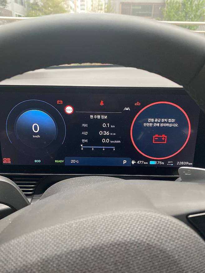 이로부터 30분 후에는 다시 "전원 공급장치 점검! 안전한 곳에 정차하십시오"라는 경고 메시지로 바뀌었다는 것이 이 글을 작성한 현대차 차주의 주장이다. 그는 "와 이거 진짜 직접 당해보니까 엄청 당황스럽다"라고 당시 경험을 전했다.