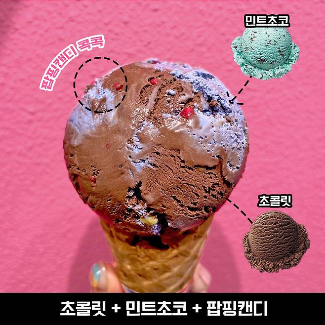 한 입 먹어봤는데,, 초코와 민트 향이 둘 다 진하더라구요. 게다가 은근히 팝핑캔디가 많이 들어가 있어서 식감도 재밌었어요.