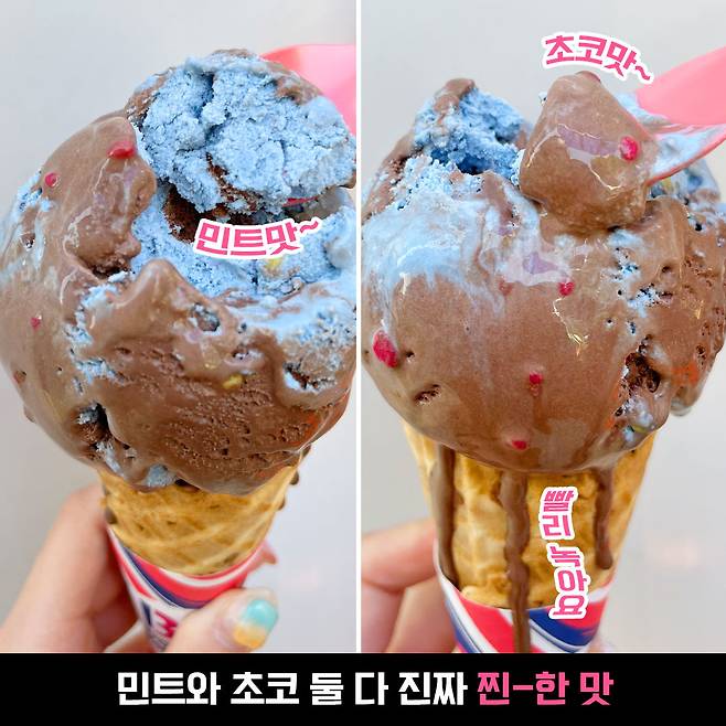 민트맛 아이스크림은 베라의 민트초코보다 민트향이 강하게 느껴졌어요. 혹시 민트초코우유 드셔보셨나요? 딱 그 맛~