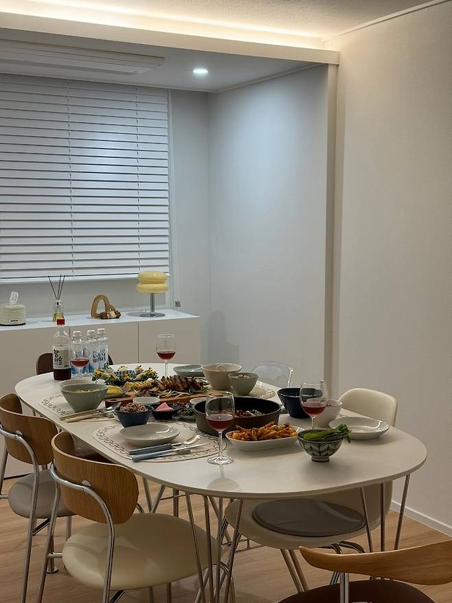 최근에 시댁 식구분들 초대해서 함께 집들이한 모습이에요. 저희 신혼집에 있는 그릇, 접시들 다 총출동한 날이었는데 그래도 식세기 덕분에 설거지 걱정은 덜어서 좋더라고요. 역시 살림 3대 이모님! 신혼 가전으로 찐 추천합니다.