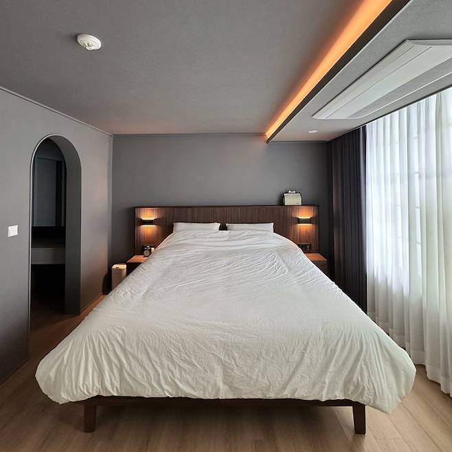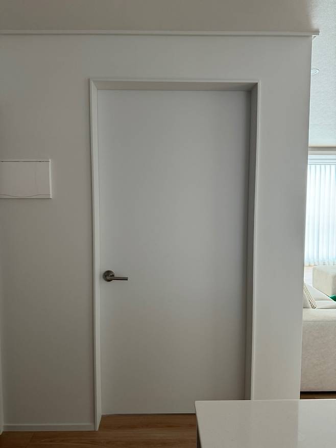 또 여기서 턴키 사장님의 센스가 돋보였던 부분은 바로 침실 문이에요! 저희 신혼집은 침실만 그레이 톤이고 다른 공간의 경우 화이트 톤이다 보니 밖에서 봤을 땐 화이트 톤, 침실 공간에서 문을 바라봤을 때는 그레이 톤으로 문의 색을 달리하면서 공간의 통일성을 고려해 주셨어요.