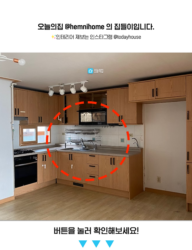 주방 또한 준공 이래 인테리어 한 적 없는 듯한 오래된 싱크대, 그리고 한때 유행한 레일 조명까지 다 철거를 진행했어요.