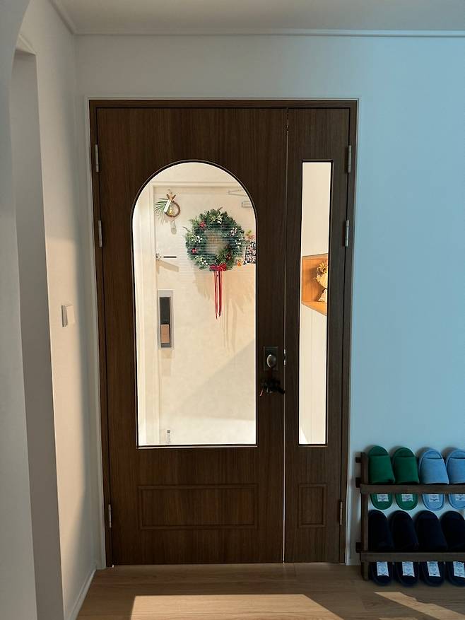 저희 신혼집의 첫인상인 우드 중문!! 턴키 업체에선 보통 화이트 중문으로 깔끔하게 많이 한다고 했지만 전 중문만큼은 꼭 우드로 하고 싶었어요. 집에 딱 들어왔을 때 따뜻하고 포근한 느낌을 주고 싶었거든요.