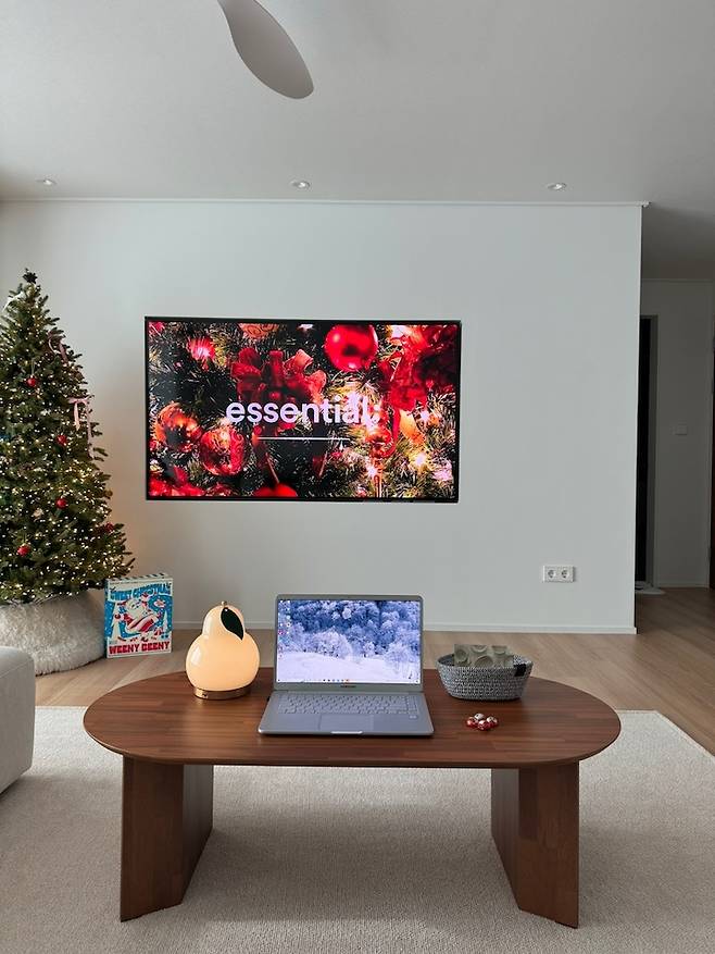 10만 원도 안 되는 금액으로 이렇게 저희 거실 분위기를 따스하고 포근하게 만들어요. 직접 조립해야 하는 번거로움이 있지만 그래도 조립하고 써 보니 조립식인지 모를 만큼 너무 튼튼하고 디자인도 깔끔 그 자체!! 색도 따스한 월넛이라 마음에 든답니다.