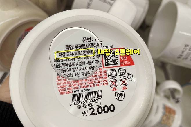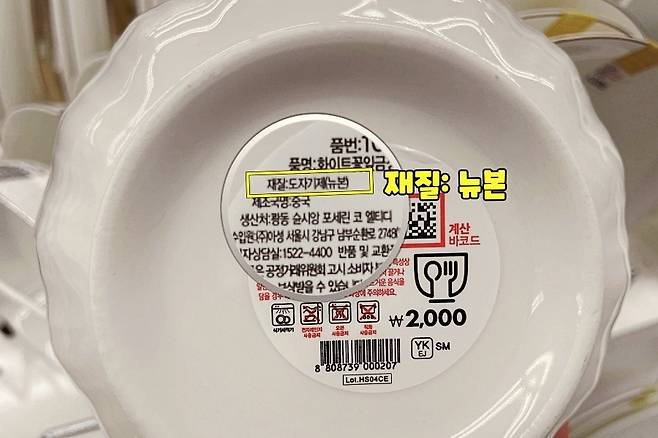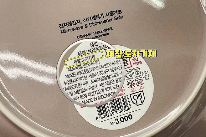 뒷면에 재질 설명이 없이 단순히 도자기재라고 쓰여 있다면 피하시는 게 좋다고 합니다. 되도록 포세린과 뉴본을 선택하시면 좋을 것 같습니다. 앞으로 다이소 갈 때 그릇 구매하기 전 뒷면 재질을 확인하고 구매하시면 좋을 것 같습니다.