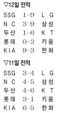 공동 선두 LG와 KT는 안방에서 나란히 승전고를 울렸다. LG는 잠실에서 SSG를 9-1로 꺾고 7연승을 달렸고, KT는 수원에서 두산을 6-1로 물리쳤다. KIA는 대전 방문경기에서 한화를 9-3으로 누르고 4연승을 달렸다.