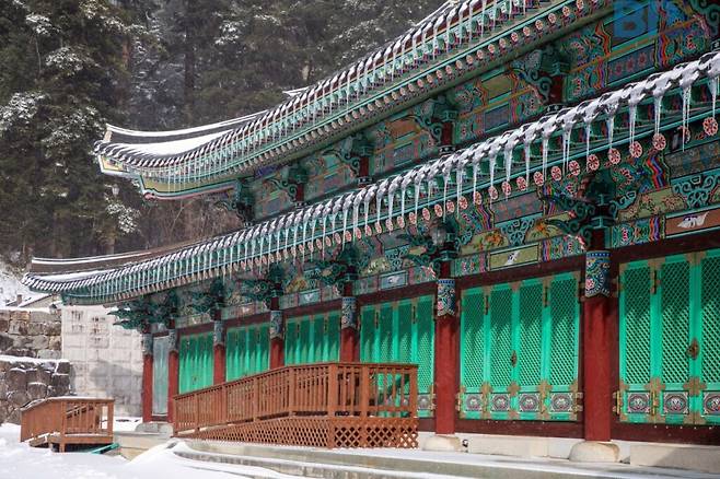 삼성각·대강당·심검당·승가학원·범종각·용금루·일주문·요사채 등이 있는 경내와 걷기 좋은 전나무숲은 겨울 특유의 분위기로 관람객을 사로잡는다.
