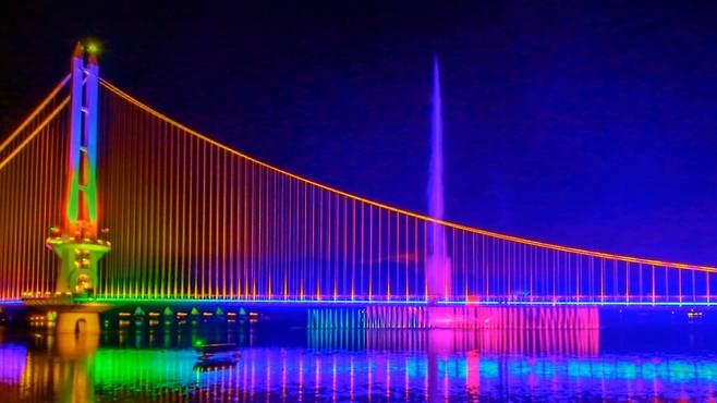 LED 불빛이 쏘아 올리는 색채와 물줄기가 교차하며 밤하늘을 수놓는 장면은 누구든 카메라를 들게 만든다.