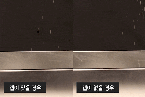 게다가, 캡을 제거한 후 모래를 부었을 땐 먼지 날림이 없지만, 실제로 사용할 땐 먼지 날림이 심한 모래도 있는데요. 같은 모래라도 입구가 작은 캡으로 모래를 부으면 먼지가 덜 날리는 것처럼 보이기 때문입니다.
