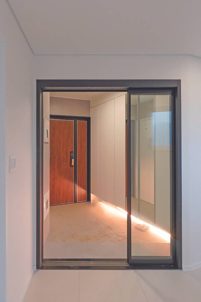 “원래 발코니는 지붕이 없는 형태였는데 다시 말씀드려 지붕을 추가했어요. 저녁에 이곳에서 바라보는 차량 헤드라이트와 노을이 참 예뻐요. 비 오는 날엔 괜히 차 한 잔 들고 오고 싶은 감성적인 공간입니다.”