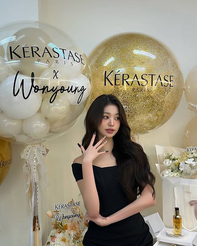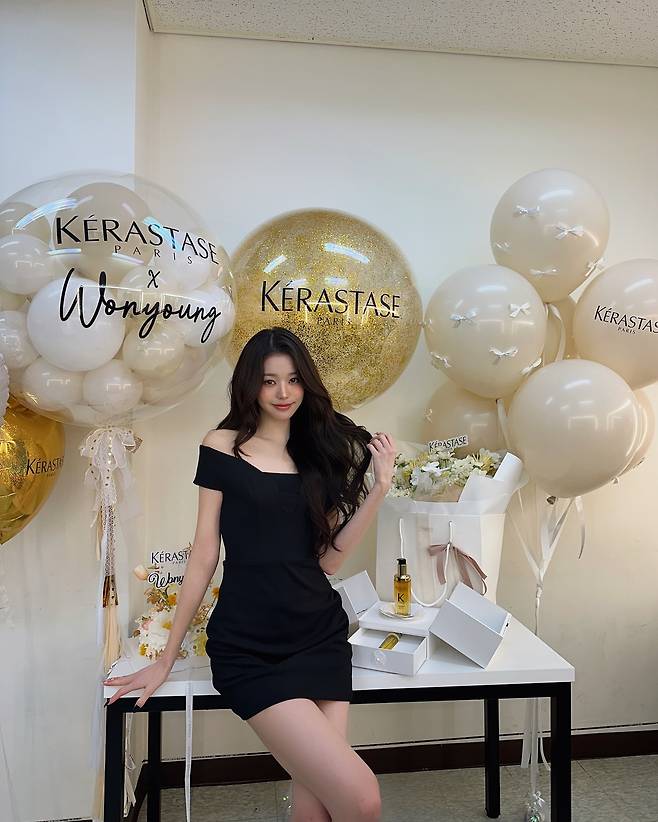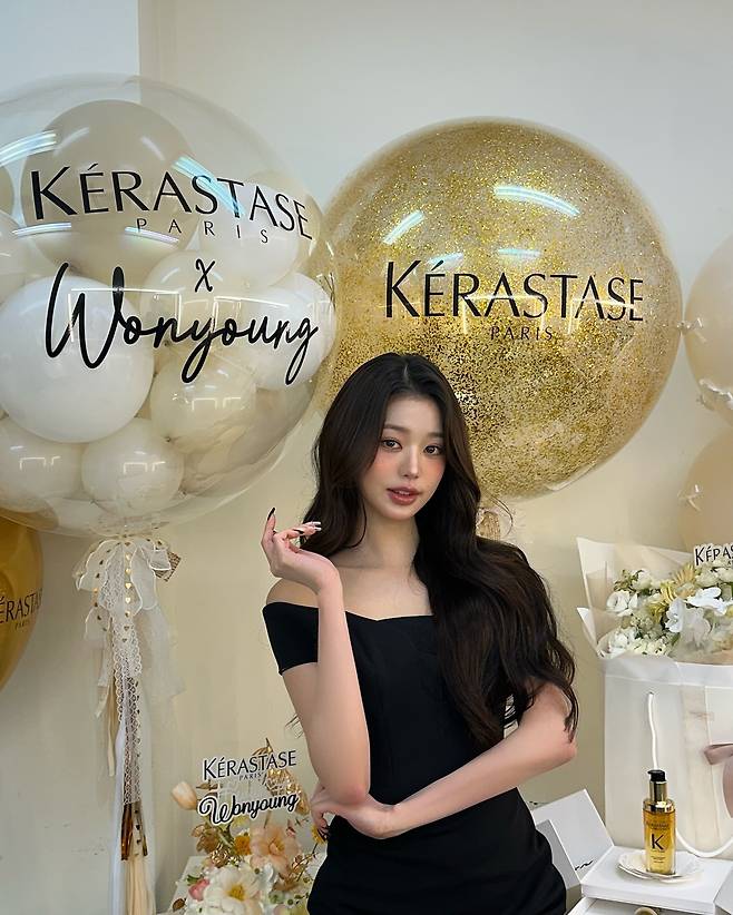 사진 속 장원영은 블랙 오프숄더 드레스를 입고 공주님처럼 러블리하고 아름다운 미모를 뽐내고 있습니다.