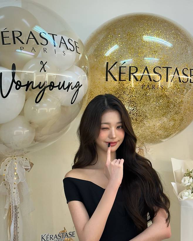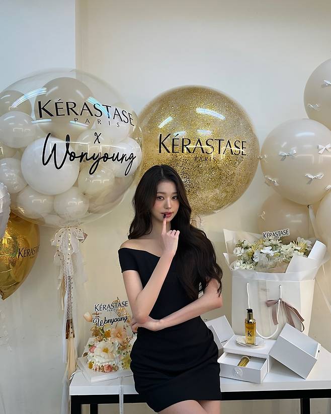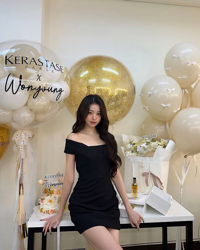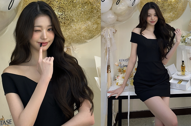 사진 속 장원영은 블랙 오프숄더 드레스를 입고 공주님처럼 러블리하고 아름다운 미모를 뽐내고 있습니다.