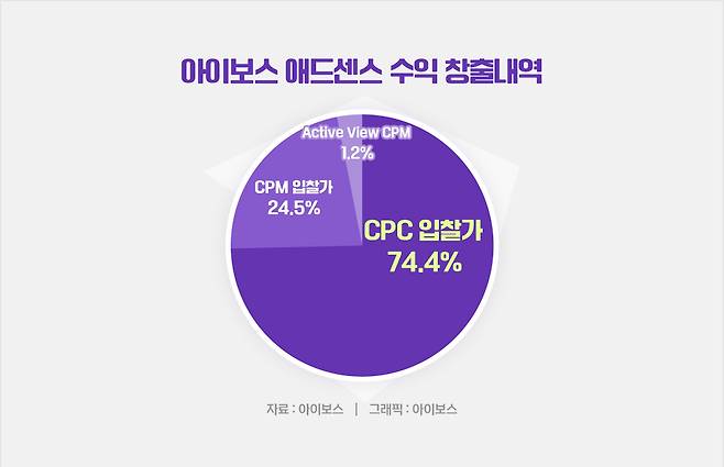 애드센스를 통해서 수익을 내고 있는 매체 입장은 매체마다 상황이 달라 여러 의견이 있었는데요. CPC 단가가 낮고, 클릭이 저조했던 콘텐츠와 연관된 광고가 CPM으로 바뀌면 추가 광고 수익을 기대할 수 있을 것이라는 의견이 있었고요. CPM 방식이므로 트래픽이 많은 매체일수록 더 많은 수익을 기대할 수 있을 것이라는 의견도 있었어요. 트래픽은 적지만 방문자의 특징이 명확해서 타기팅이 수월한 경우 높은 CPC 입찰가의 광고가 노출되고, 클릭률이 높은 웹사이트나 블로그의 수익은 상대적으로 감소할 수 있다고 예상하고 있어요. 올해 아이보스 애드센스 수익 창출내역을 기준으로 살펴보면 CPC 입찰가에 따른 수익 비율이 74.4%, CPM의 경우 24.5%였어요.