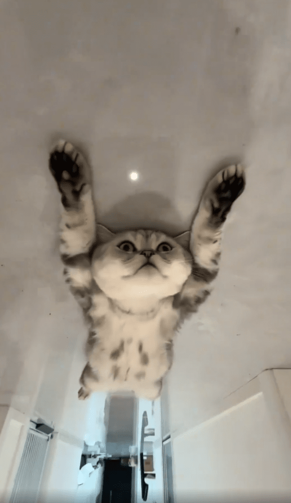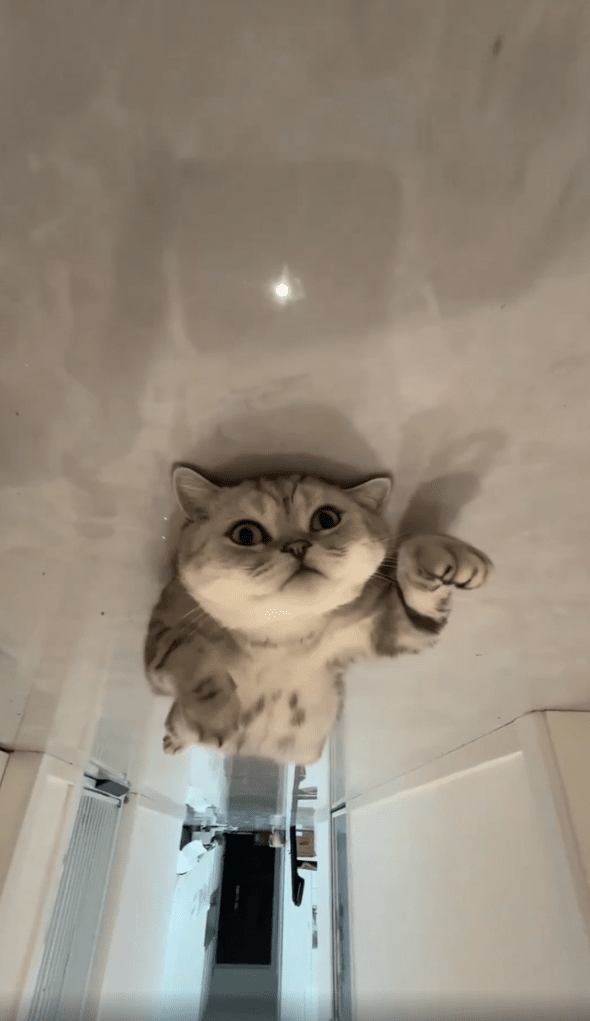 집사가 복도에 누워있는 고양이에게 걸어갑니다. 집사의 발걸음 소리가 들려도 아랑곳하지 않고 누워있는 고양이인데요. 집사가 다가가도 뭘 보냐는 듯 쳐다보기만 합니다. 방이 많고 넓은 집, 세상 걱정 없다는 포즈로 누워있는 고양이와 고양이의 뭘 봐? 하는 저 귀여운 표정까지 정말 편한 삶을 사는 고양이 같습니다. 저까지 부러워지네요!