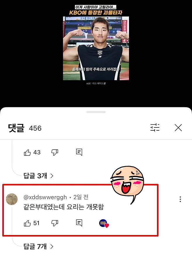 야구커뮤니티와 SNS 등에서 취사병 시절 행적이 같은 부대원을 통해 폭로되었다는데요...