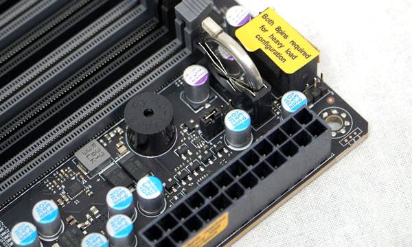 전원부는 일반 데스크탑 PC용 ATX 메인보드가 1개의 24핀 ATX 메인 전원 커넥터와 1~2개의 +12V 8핀 CPU 전원 커넥터를 가지고 있는데 비해 X13SWA-TF는 최대 56코어에 350W TDP로 동작하는 제온 W-3400 시리즈 프로세서를 지원할 수 있도록 3개의 8핀 CPU 커넥터가 달려있다.