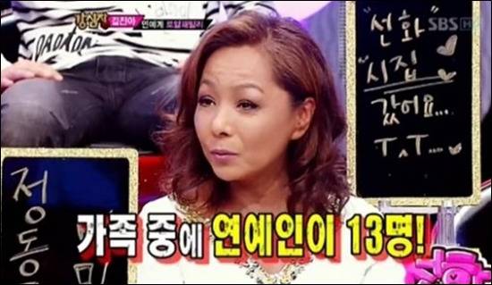 남동생 김진근을 비롯해 이모부 이덕화, 제부 최병서까지, 가족 중 연예인만 무려 13명. 누가 봐도 '끼'로 설명되는 집안이었다.