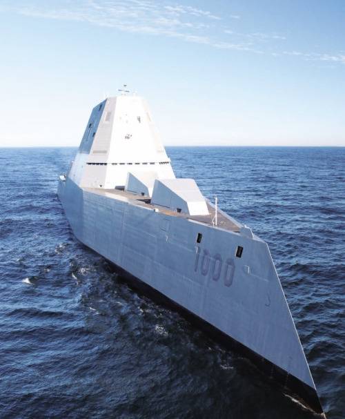 줌왈트급 구축함은 모든 각면과 구조에서 레이더 탐지를 극소화하는 특수 스텔스 설계로 만들어졌다.
