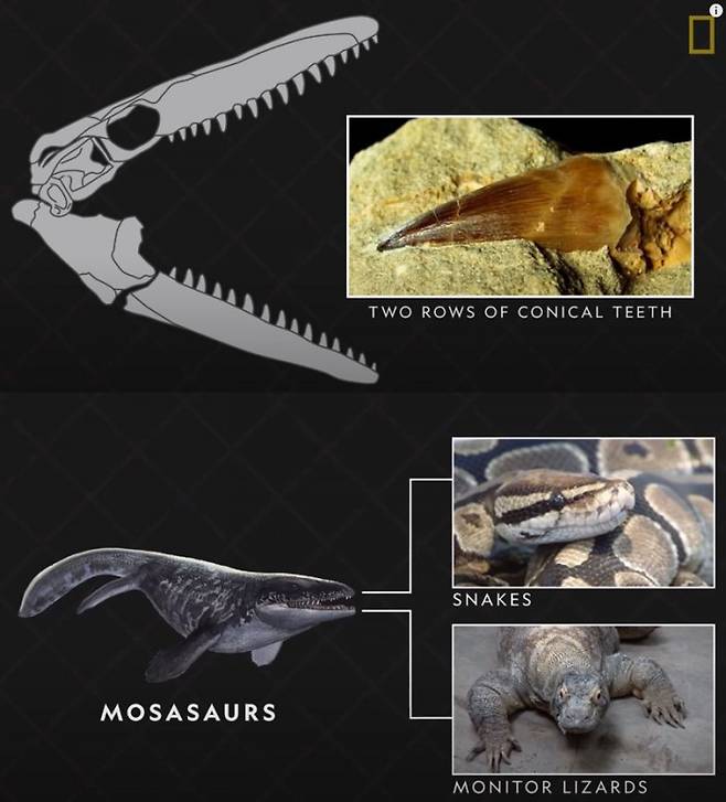 전문가들은 모사사우루스가 고래와 같이 커다란 개체는 물론 동족끼리도 공격해 잡아먹었을 가능성이 있다고 추측했다. 6600만년 전 소행성 충돌로 거의 모든 공룡이 멸종하기 전까지 바다를 휩쓸던 이 최강자는 그 뒤에 등장한 메갈로돈의 한참 선배인 셈이다.