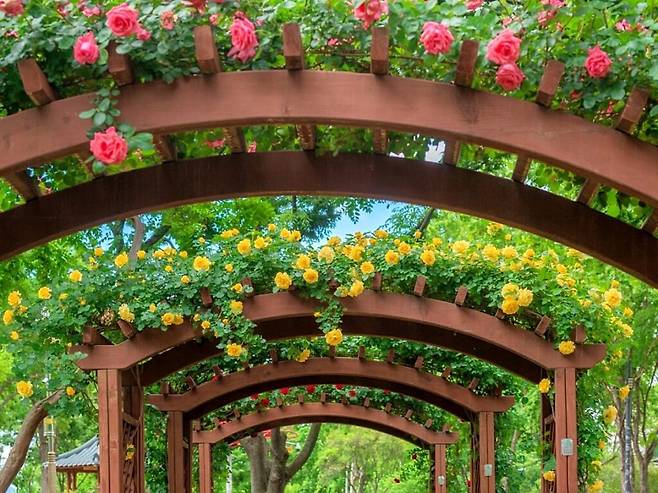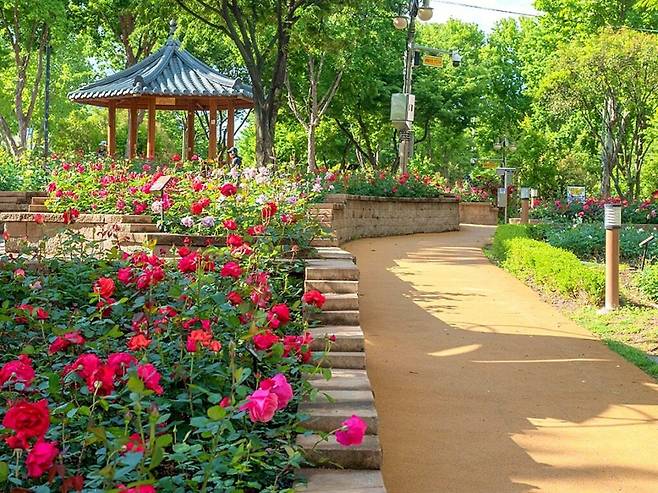 장미원은 5월의 장미꽃이 만개하며, 이곳을 찾은 관광객들은 화려한 장미의 향기 속에서 산책을 즐기며 기분 좋은 시간을 보낼 수 있다.