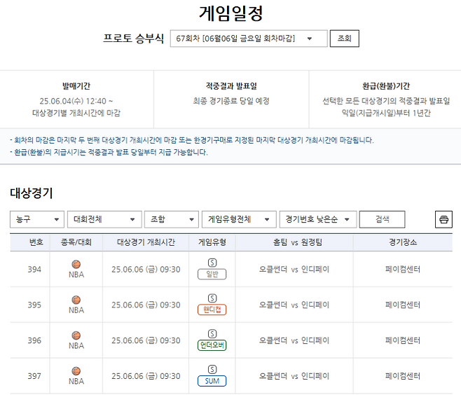 2024~25시즌 NBA 파이널 1차전 대상 프로토 승부식 67회차 게임 발매 개시
