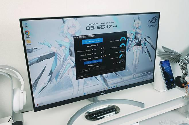 이렇게 해서 약 한 달간 인텔 코어 울트라7 265K CPU를 사용해, 일상과 게임, 고부하 작업 등 다양한 활동을 진행해 봤습니다. 인텔 CPU는 뛰어난 멀티태스킹 성능과 이전 세대 대비 향상된 전력 효율성을 바탕으로, 게이밍뿐만 아니라 작업에서도 뛰어난 성능을 경험할 수 있고, 코어별 배수 및 전압 조정 등 정밀한 오버클럭 설정으로, 자신에게 더욱 최적화된 시스템 활용이 가능했는데요. 리뷰에서는 올코어 배수 적용을 통해 간단하게 최고 성능을 이끌어 냈지만, 반대로, 자동 오버클럭이나 권장 값을 적용해, 저전력 및 저발열에 최적화된 컴퓨팅 환경을 연출할 수도 있었습니다. 때문에, ASUS 메인보드에서 제공되는 다양한 AI 기술을 경험하고, 이를 바탕으로 더욱 간편하게 안정적인 성능을 경험할 수 있는 고성능 CPU를 찾고 계시다면, 보다 합리적인 가격대에서 만나볼 수 있는 높은 효율성의 해당 제품을 추천드리고 싶네요.