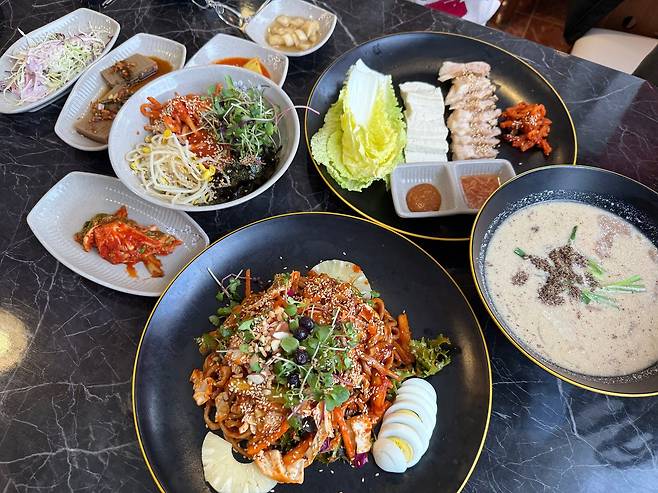 한정식 맛집답게 도토리정원에서는 종류별로 코스가 나뉘어 있어 원하는 메뉴와 예산에 맞춰 고를 수 있어요. 식탁에 차려지는 반찬과 국, 메인 요리가 넉넉해 푸짐한 한 상을 즐길 수 있답니다. 쟁반국수, 새삭비빔밥, 도토리 들깨수제비, 도토리 해물전 등 이곳의 시그니처 메뉴들도 눈길을 사로잡는데, 건강한 맛을 자랑하면서도 포만감이 크게 느껴져요. 재료 본연의 맛이 잘 살아 있어 부모님도 만족스러워하실 거예요.