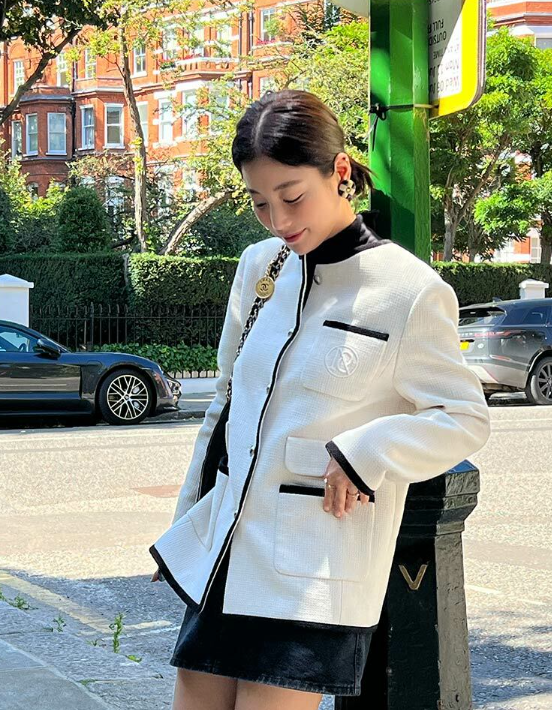 이 자켓 하나만으로 ‘하객룩 교과서’라고 불러도 손색이 없다. 트위드 특유의 클래식함과 기은세 특유의 감각적인 스타일링이 만나 완벽한 조화를 이룬 순간이다.