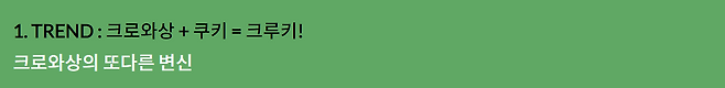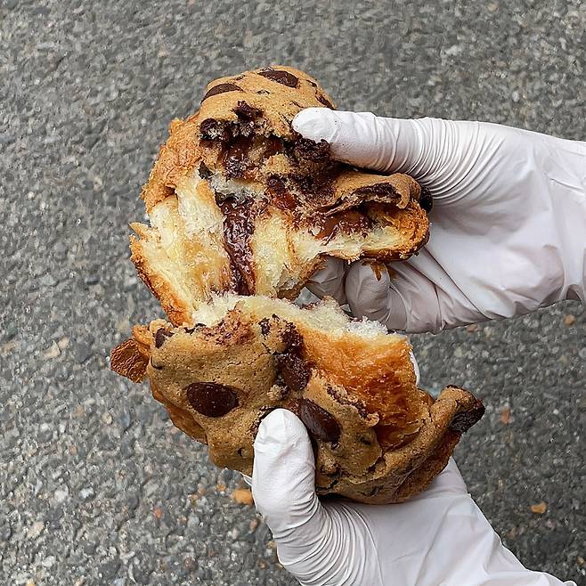 크루키, 이름에서 연상되는 무언가가 있지 않나요? 맞아요. 크루키는 크로와상 + 쿠키의 줄임말이랍니다. 크로와상과 미국식 초콜릿 칩 쿠키를 결합한 디저트에요.