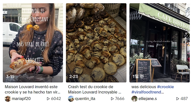 크루아상을 반으로 자른 후, 버터 초콜릿 칩 쿠키 반죽을 채운 뒤 노릇노릇해질 때 까지 구워주면 끝 ! 루바드에서 지난 12월 처음으로 크루키를 출시한 후 한 틱톡커가 크루키에 대한 영상을 업로드했고, 폭발적으로 바이럴이 되면서 크루키의 인기는 고공행진하기 시작했어요.