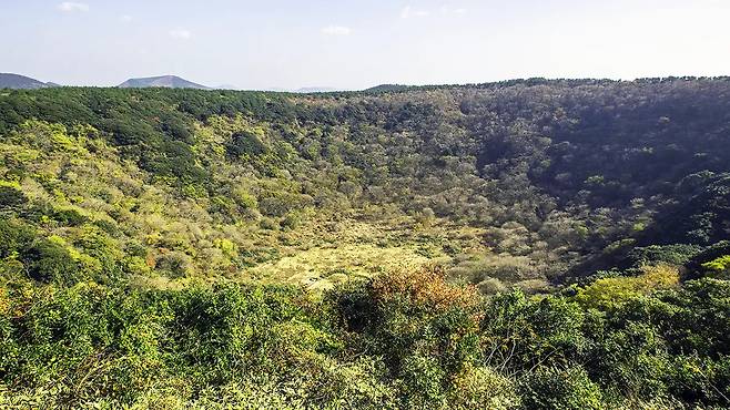 백록담보다도 깊은 이 분화구는 높이보다 속이 더 큰 산 자연이 만든 역설적인 조형물이다.