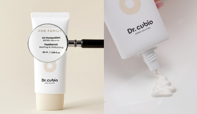 온 가족이 안심하고 사용할 수 있는 저자극 선크림 ‘닥터큐비오 퓨어 선크림’도 있다. 자외선 차단 지수는 SPF 50+, PA++++ 등급이다. 미네랄 성분으로 자외선을 반사하는 방식의 무기자차이면서도 백탁 현상을 최소화해 사용성을 최대한 살렸다.