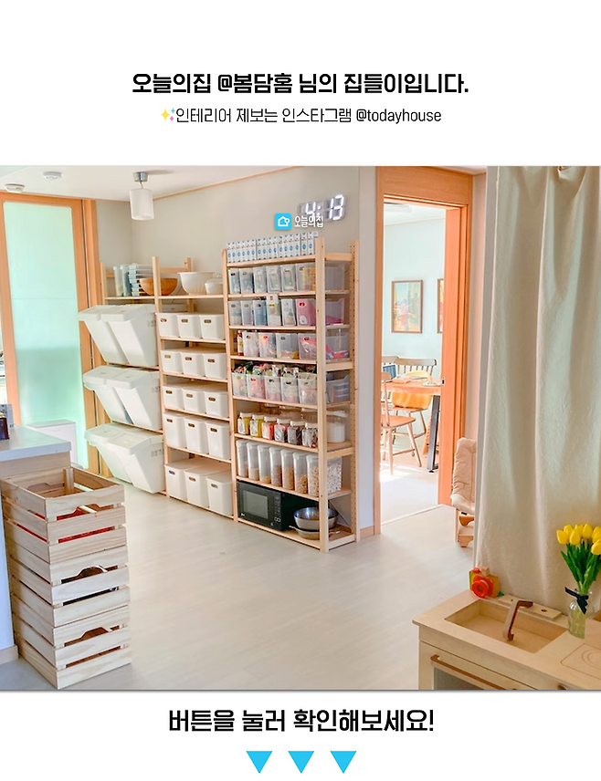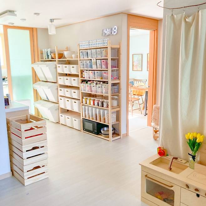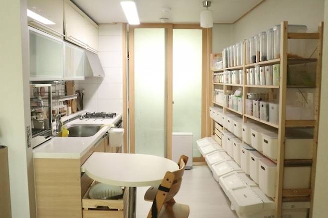 4. 주방은 셀프로 팬트리장을 만들어 차곡차곡 식료품과 주방 도구들을 채워 넣었어요.