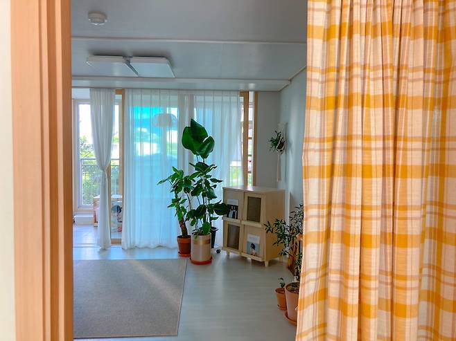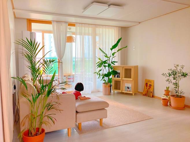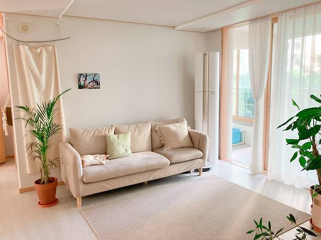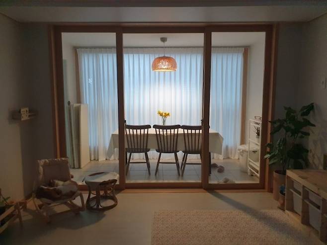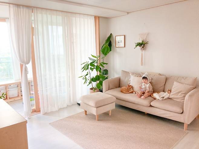 3. 아이 공간이 베란다로 옮겨지고 텅 빈 거실에는 소파가 생겼어요.