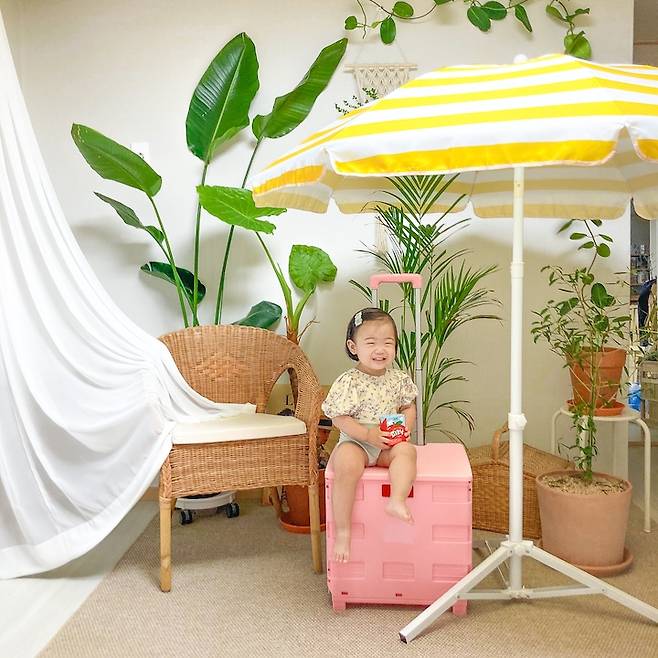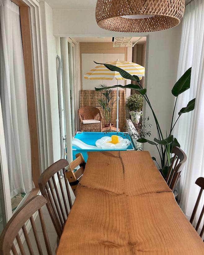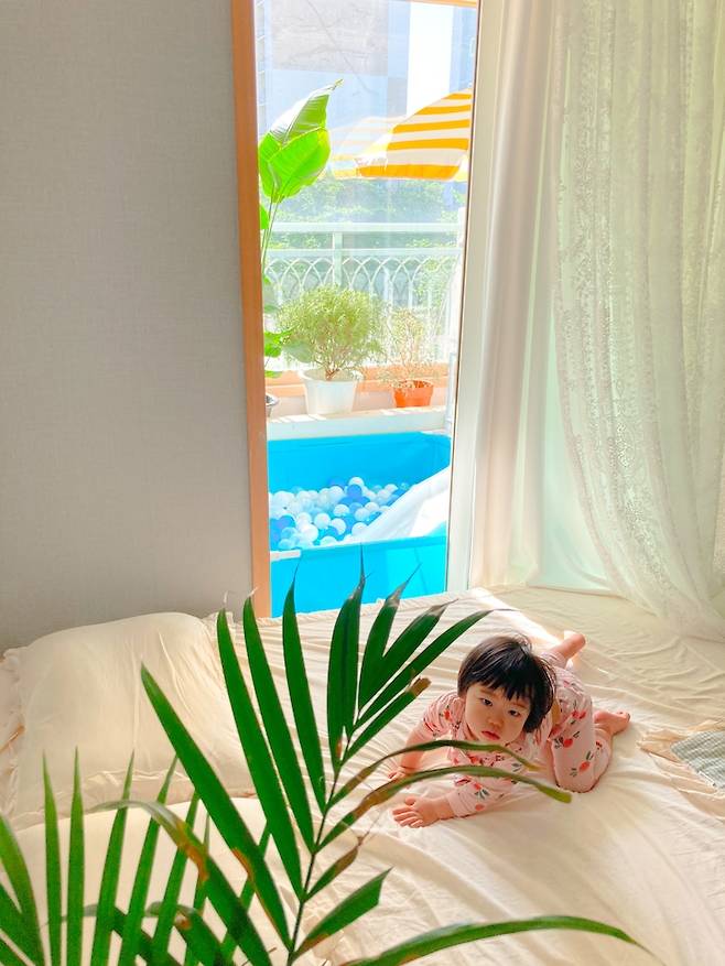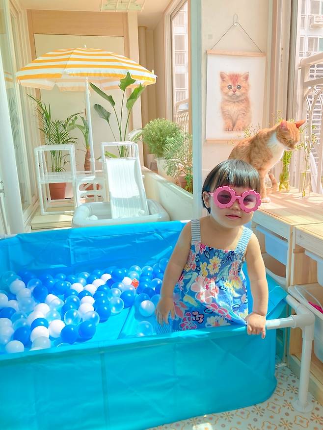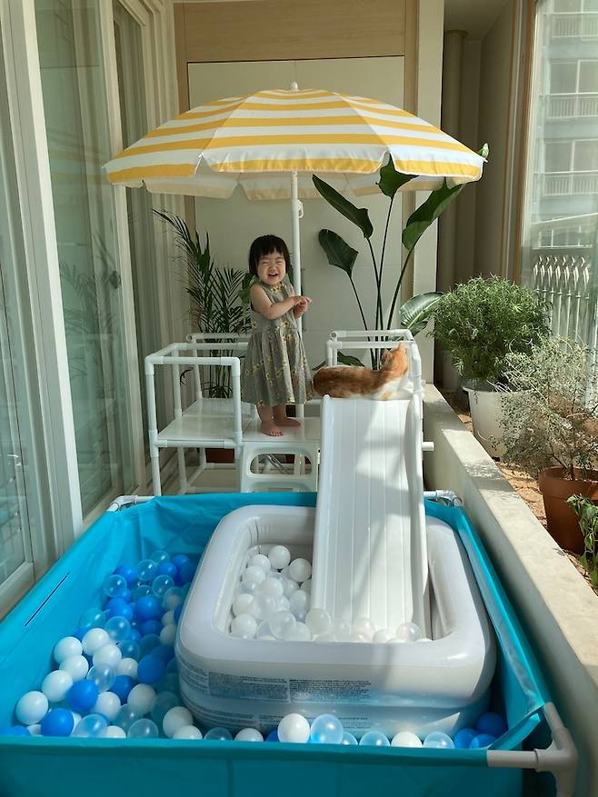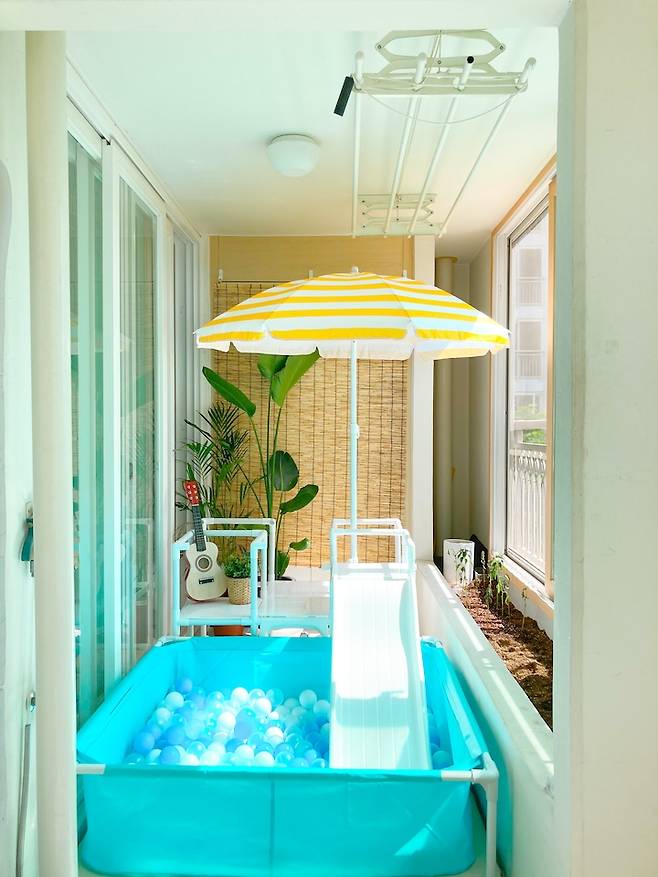 여름이 시작되는 6월, 침실과 연결되는 발코니에는 워터파크를 만들어 주었어요.
