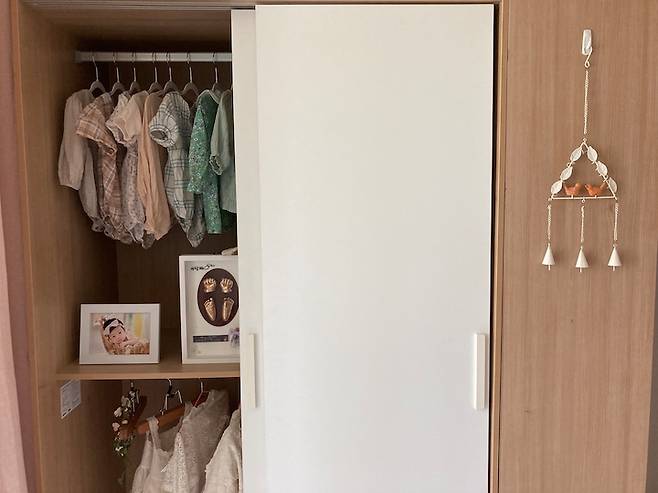 드레스룸에는 옷장과 빨랫감들만 놓고 생활하고 있어요. 집 자체적으로 붙박이장이 있던 터라 공간이 협소하다 보니 원래 이쁘게 꾸미려던 계획은 포기하고 실용적으로 생활하고 있답니다.