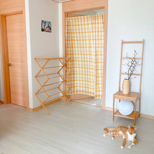 현관을 열고 들어오면 긴 신발장이 있으나 아직 미처 현관을 꾸미진 못해서 이쁜 커튼이 달린 중문에서부터 집들이를 시작할게요, 어서 오세요. :)