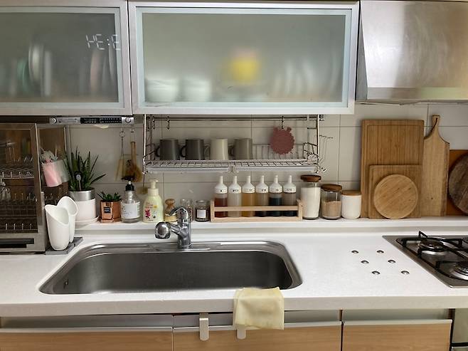 저도 막 상부장 없고 동화 같은 느낌의 주방으로 꾸미고 싶으나 전셋집인지라. ㅎㅎ