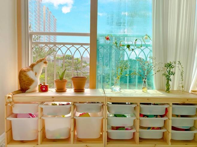 2. 따뜻한 봄 햇살이 들어오는 4월에 아이 공간을 베란다로 옮겨 주었지요.