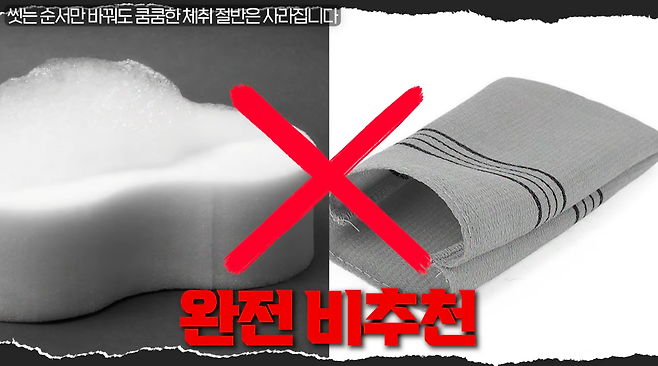 때수건, 스펀지, 해면 같은 도구 사용은 권장하지 않는다.이경실 원장은 "문지르면서 희열을 느끼는 분들도 있지만, 각질이 과도하게 벗겨지면 피부 장벽이 손상되고 장기적으로는 문제를 유발한다"고 말한다.깨끗해 보이는 건 일시적인 착각일 뿐, 손으로 거품을 내 부드럽게 닦는 것이 가장 건강한 방법이다.특히 어르신들에게는 손을 많이 움직이며 씻는 것만으로 관절 사용과 혈액 순환에도 도움이 되므로 손 세안을 추천한다.