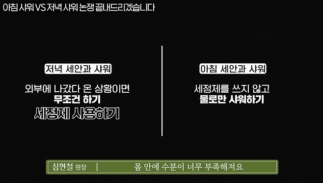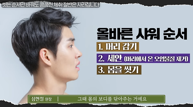 피부과 전문의 심현철 원장, 가정의학과 전문의 이경실 원장이 지식 인사이드에 출연해 알려준“냄새와 청결 100% 잡는 완벽한 샤워 방법”은 다음과 같다.