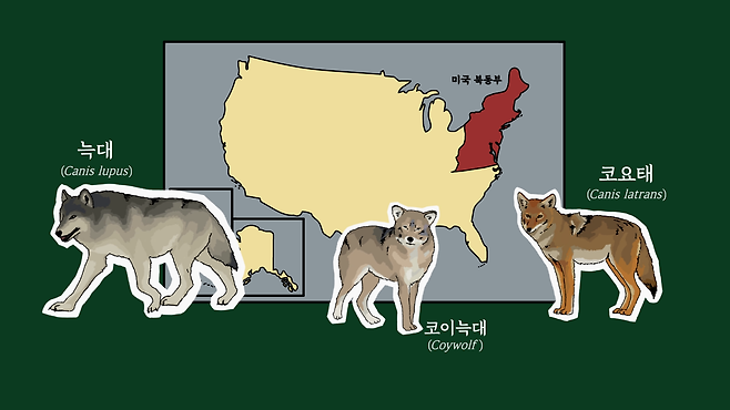 같은 이유로 미국 북동부에서는 늑대(Canis lupus)와 코요태(Canis latrans)의 이종교배 종인 코이늑대(Coywolf)가 발견되고 있습니다. 이 두 종 모두 아직 미분류 상태이므로 북극곰과 회색곰, 늑대와 코요태가 같은 종으로 분류될지도 두고 볼 일입니다.