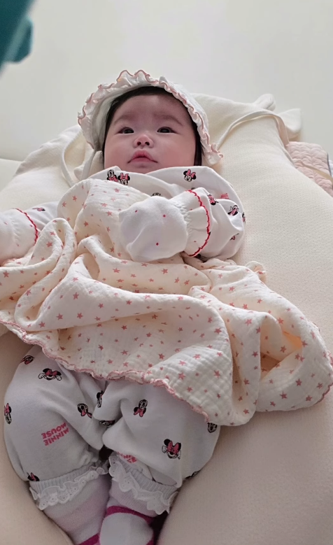 손싸개, 보넷 모자, 레이스 디테일의 양말까지 따뜻하고 귀여운 분위기를 강조한 베이비룩의 정석임!ㅎㅎ