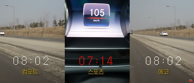 그런데 문득 모드별로 정말 가속력 차이가 있는지에 대해서의 궁금점과 전기차와 중형 가솔린 세단과는 얼마나 차이가 발생하는지에 대해서 의문이 들어 자동차 주행 모드별(컴포트, 에코, 스포츠) 차이는 얼마나 나는지와 전기차와 내연기관 모드별 가속 차이를 알아보겠습니다.