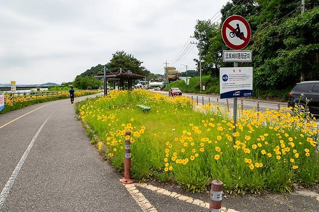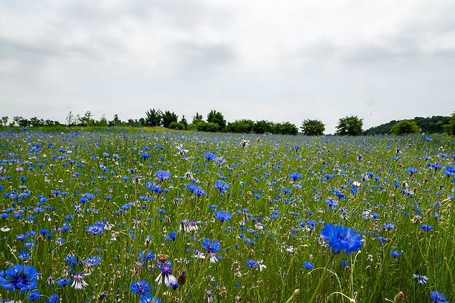 인공 보는 경기도 여주에만 세 곳이 있다. 이포보와 여주보 그리고 강천보. 모두 관리가 잘되고 있으니 그나마 다행이라고 해야 할까? 대형 공원과 자전거 길이 조성되어 있고 강변에는 산책로와 캠핑장이 갖춰져 있다. 이번에 찾아간 이포보 아래 당남리섬은 곳곳에 보라색 수레국화가 만개했고, 유채꽃도 제주도 못지않게 피어 있다. 아쉽게 유채꽃은 방문 시기가 조금 늦어 많이 졌지만, 대신 금계국이 연신 손을 흔들며 사람을 반긴다.