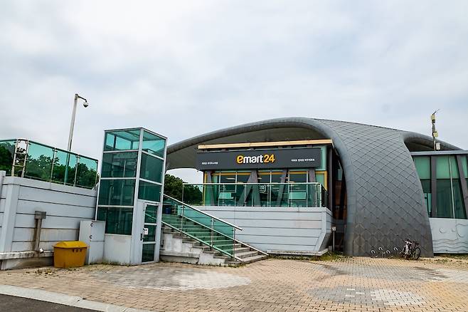 이포보를 즐기는 방법은 두 가지가 있다. 먼저 이포보 한쪽 끝에 있는 전망대를 가거나 그 반대편에 있는 편의점을 가는 것이다. 전망대는 시설도 좋고 많이 알려져 패스하고, 여기서는 그 반대편에 있는 편의점을 소개할까 한다. 이마트24 편의점인데 편의점 안과 밖에 의자와 테이블이 있어 쉬면서 경치를 감상하기 좋다. 주로 자전거 동호인이 많은데 컵라면이 아닌 즉석라면도 있어서 한강을 내려다보며 라면 먹는 맛이 그만이다.