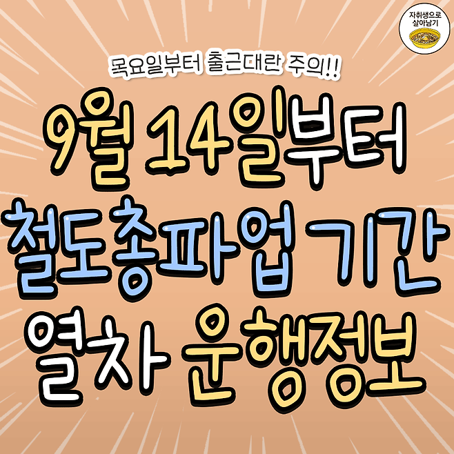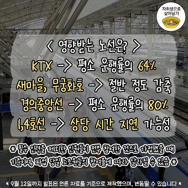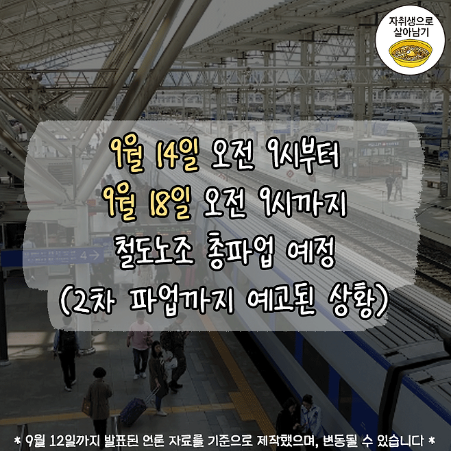 9월 14일부터 철도 총파업기간 열차 운행 정보