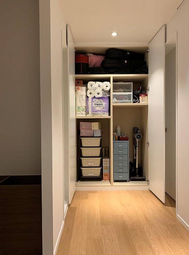 콘센트를 매립하여 청소기를 보관할 수 있는 복도장